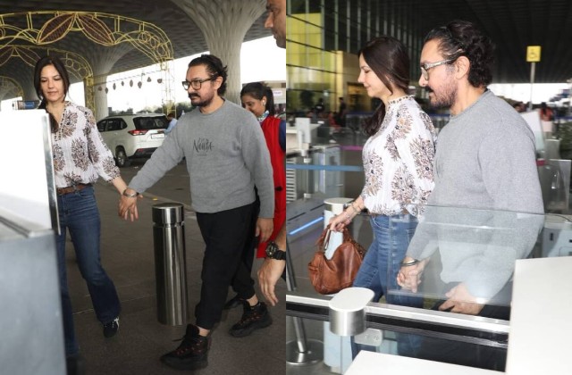 गौरी का हाथ थामे एयरपोर्ट पर स्पॉट हुए आमिर खान, गर्लफ्रेंड संग दिखी कमाल की बॉन्डिंग