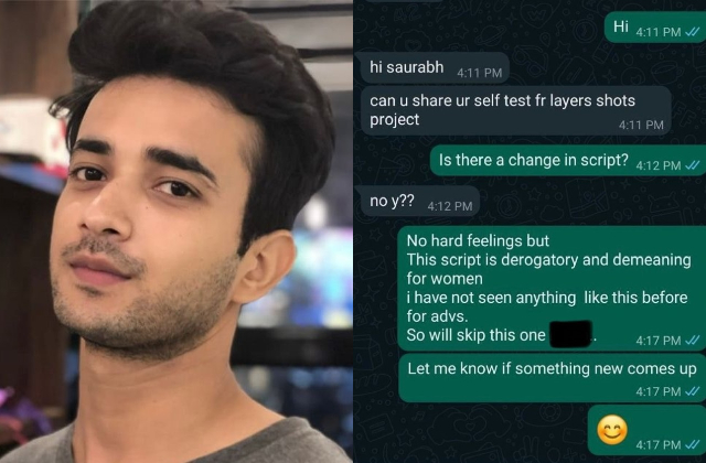गैंग रेप वाले घटिया एड को एक्टर सौरभ वर्मा कहा था ''NO'', चैट सामने आते ही लोगों ने बांधे तारीफों के पुल
