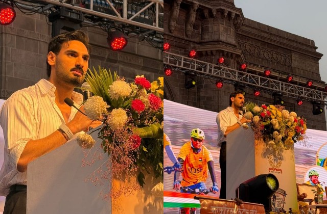 गेटवे ऑफ इंडिया पर CISF के ‘वंदे मातरम कोस्टल साइक्लोथॉन 2026’ में अहान शेट्टी ने लिया हिस्सा