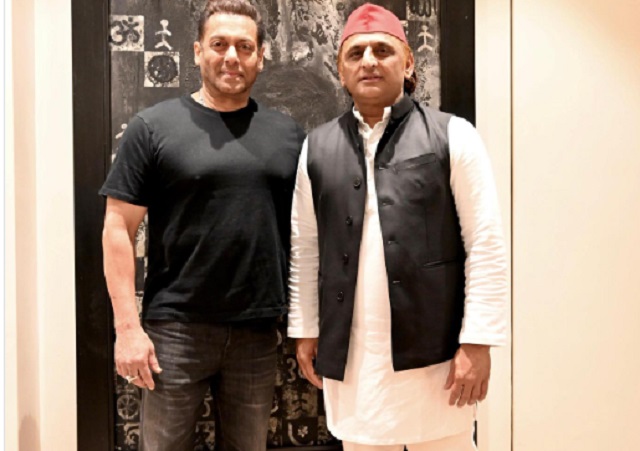 अखिलेश यादव ने सलमान खान के साथ मुलाकात की तस्वीरें सोशल मीडिया अकाउंट पर शेयर कीं और कैप्शन में लिखा- "मुंबई मिलन!"