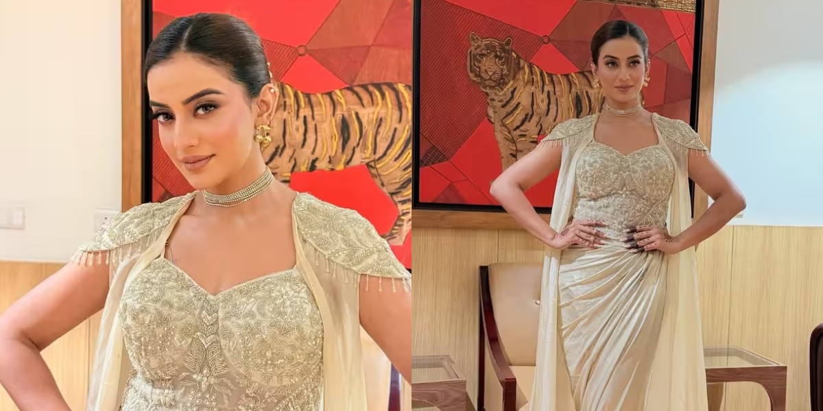 अक्षरा ने करवा चौथ के लिए जो गोल्डन आउटफिट चुना है, वह साड़ी स्टाइल में डिजाइन किया गया गाउन है। यह ड्रेस पारंपरिक लुक को मॉडर्न टच के साथ मिलाकर एक नया फैशन स्टेटमेंट बना रही है। आउटफिट की फिटिंग, रॉयल फॉल और ड्रेपिंग इसे ग्रेसफुल बना रही है, जो हर महिला को क्वीन जैसा फील देगा।