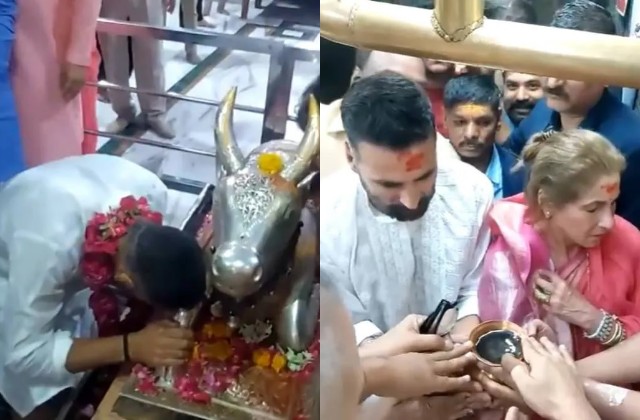सामने आई तस्वीरों में देखा जा सकता है कि अक्षय कुमार अपनी सास व एक्ट्रेस डिंपल कपाड़िया संग तन-मन से भगवान शिव की पूजा-अर्चना में डूबे दिख रहे हैं। वह नंदी महाराज के कान में अपनी विश भी कहते दिखते हैं।