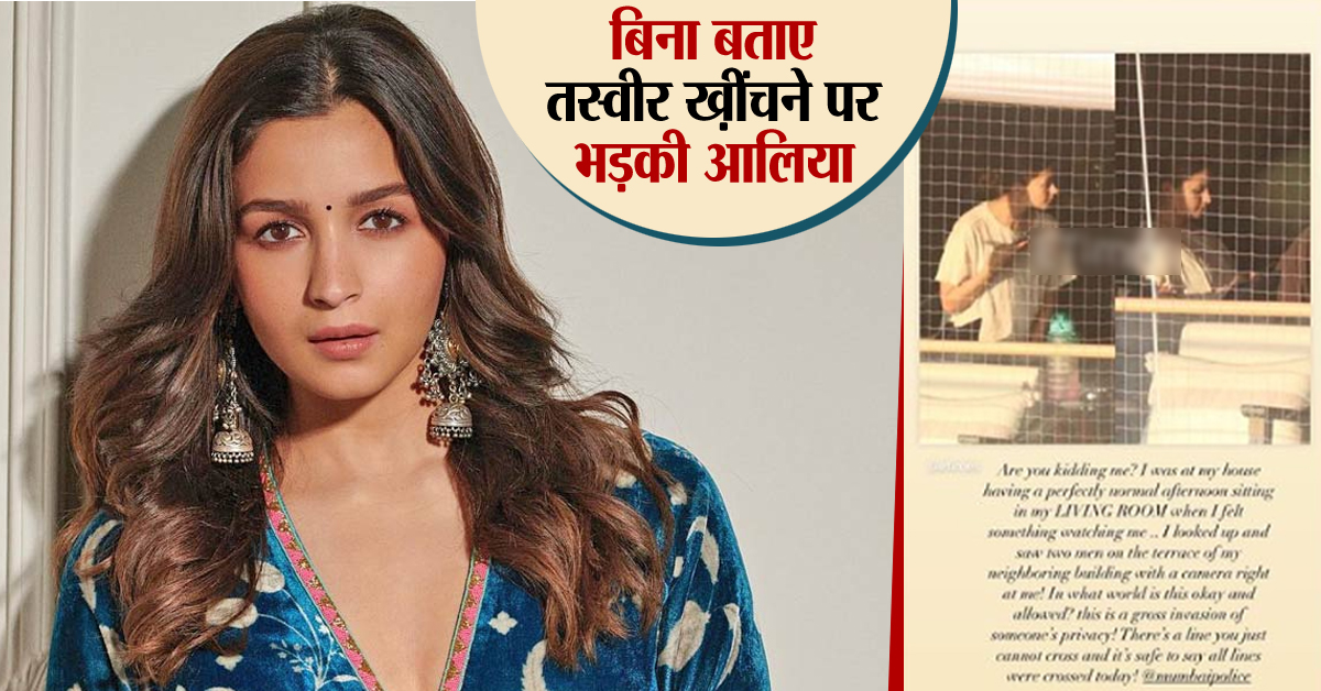 दऱअसल आलिया भट्ट की ये तस्वीर ई-टाइम्स के पोर्टल ने प्रकाशित की, जिसमें एक्ट्रेस अपने घर के लिविंग एरिया में रिलेक्स कर रही थीं। तस्वीर को अपनी इंस्टा स्टोरी पर शेयर करते हुए आलिया ने लिखा, ‘क्या आप मेरे साथ मजाक कर रहे हो..ये एक परफेक्ट दोपहर थी जब में अपने घर के लिविंग एरिया में थी, तभी मुझे एहसास हुआ कि कोई मुझे देख रहा है..जैसे ही मैंने ऊपर देखा दो आदमी मेरे घर के पड़ोस में बनी बिल्डिंग पर कैमरा लिए खड़े हैं। क्या ये दुनिया में हो सकता है? क्या ये किसी की प्राइवेसी का हनन नहीं है? आपके और हमारे बीच में एक लाइन थी जो आज आपने क्रॉस कर दी है।’ इस पोस्ट में आलिया ने मुंबई पुलिस को भी टैग किया है।