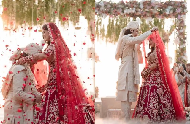 वहीं, उनकी दुल्हनिया दिशा चंद्रेजा ने लाल रंग का खूबसूरत लहंगा पहना। हेवी ज्वेलरी, हाथों में सुंदर मेहंदी और ग्लोसी मेकअप से उन्होंने अपने लुक को कंप्लीट किया, जिसमें वो बेहद ही ग्रेसफुल लगीं।