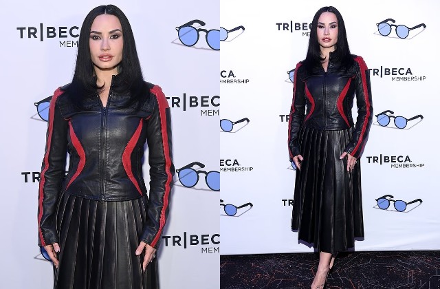 लुक की बात करें तो इस खास मौके पर डेमी लोवाटो ब्लैक लेदर आउटफिट पहने नजर आईं, जिसमें रेड एक्सेंट पैनलिंग वाली जैकेट और प्लेटेड लेदर मिडी स्कर्ट शामिल थी। उनका यह लुक काफी बोल्ड और एलिगेंट लगा।