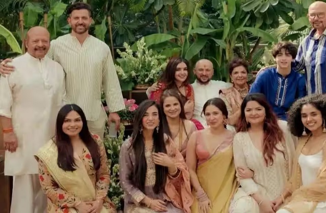 तस्वीरों में पूरा परिवार ट्रेडिशनल अंदाज में नजर आया। सबा सिल्वर डिजाइन वाले कुर्ता सेट में बेहद खूबसूरत दिखीं। वहीं ऋतिक रोशन सफेद कुर्ता-पायजामा में सादगी के साथ खूब जचे।