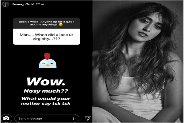 हाल ही में एक्ट्रेस इलियाना डिक्रूज ने इंस्टाग्राम पर 'आस्क मी एनीथिंग' सेशन शुरू किया और उनके एक फोलोवर ने उनसे वर्जिनिटी के बारे में सवाल पूछ लिया। फैन ने पूछा, "आपने वर्जिनिटी कब खोई थी?" इस पर इलियाना ने ट्रोल को करारा जवाब दिया और लिखा, "वाह। बहुत क्यूरियस हो?? आपकी मां इस पर क्या कहेंगी?"