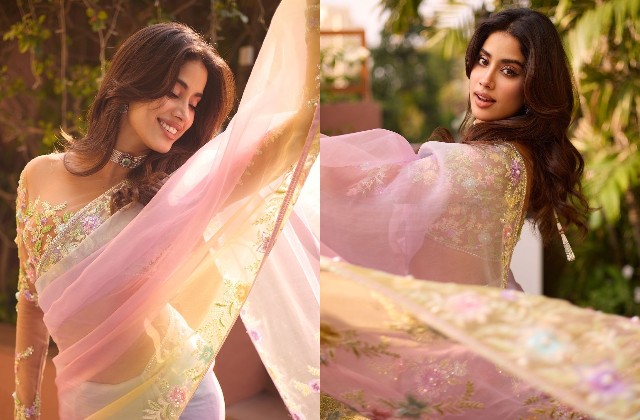 मल्टीकलर नेट साड़ी में जाह्नवी कपूर ने गिराई हुस्न की बिजलियां, पल्लू लहराकर कैमरे के सामने दिए किलर पोज