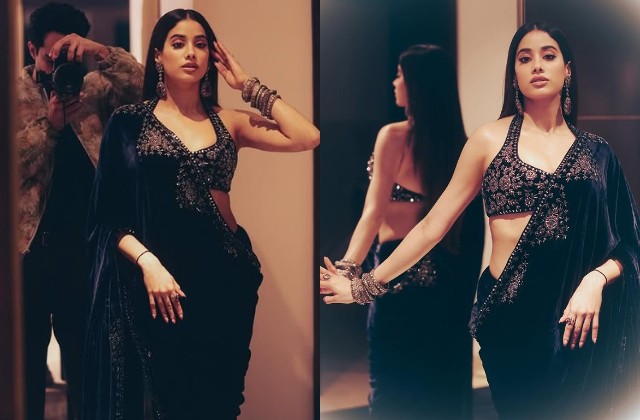 ब्लू वेलवेट साड़ी में जाह्नवी कपूर ने ढाया सितम, पल्लू गिराकर बैकलेस ब्लाउज में दिए कातिलाना पोज