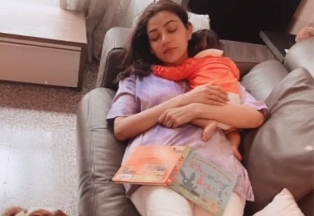 सामने आई तस्वीर में देखा जा सकता है कि काजल अपने लाडले नील को सीने से लगाए सुकून से सोईं नजर आ रही हैं। उनकी जांघ पर एक किताब रखी हुई है। जाहिर है कि एक्ट्रेस को लाडले को लोरी सुनाती सुनाती खुद भी चैन की नींद सो गईं।
