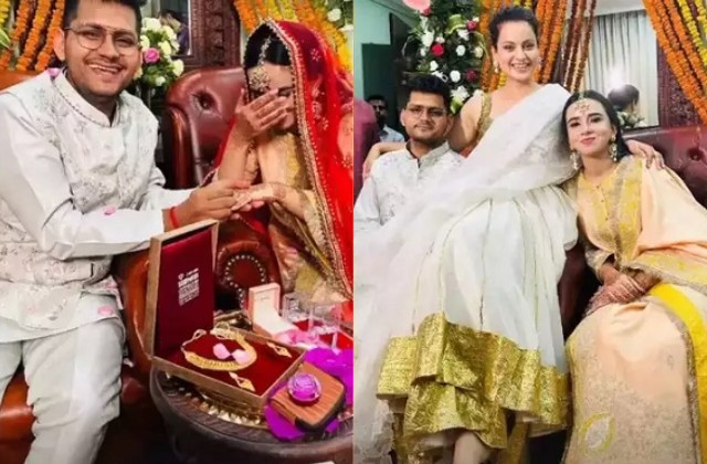 तीसरी तस्वीर में कंगना के सबसे छोटे भाई वरुण दुल्हन के साथ बैठे हुए हैं। दोनों एक साथ काफी खुश नजर आ रहे हैं। इस तस्वीर के साथ कंगना ने भाई और भाभी को शुभकामनाएं दीं और एक मजाकिया नोट भी लिखा है। कंगना ने लिखा- ले भाई तेरा भी हो गया काम। सबसे छोटा लेकिन शादी की सबसे जल्दी। आखिरी तस्वीर में कंगना अपने भतीजे पर प्यार लुटाते हुए दिखाई दे रही है। फैंस इन तस्वीरों को खूब पसंद कर रहे हैं।