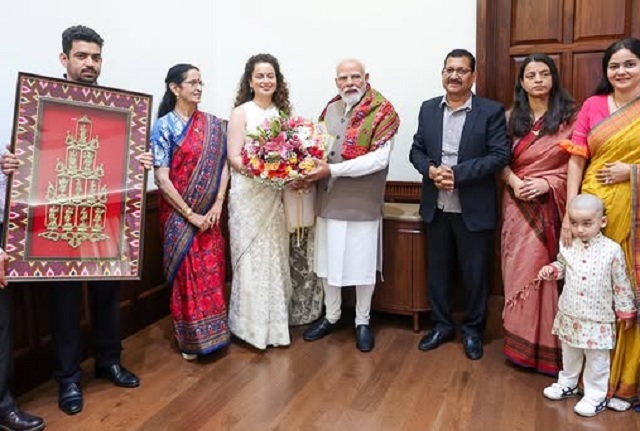 पीएम मोदी से मुलाकात की तस्वीरें शेयर कर कंगना रनौत ने कैप्शन में लिखा-'आज परिवार सहित माननीय प्रधानमंत्री जी का समय और मार्गदर्शन मिला। मेरे लिए ये एक यादगार जन्मदिन रहा।'