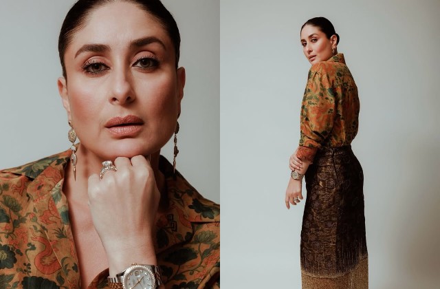 ब्राउन फ्लोरल शर्ट के साथ स्टाइलिश स्कर्ट में करीना कपूर का गॉर्जियस लुक, 41 की एक्ट्रेस की ब्यूटी देख फैंस हुए कायल