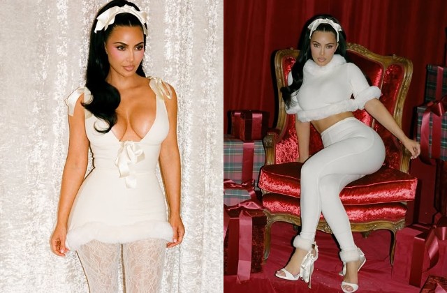दूसरे लुक में किम ने एक मज़ेदार और स्टाइलिश ‘स्नो-बनी’ वाइब अपनाई।