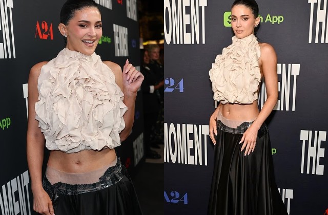 लुक की बात करें तो प्रीमियर नाइट के लिए काइली ने बेहद स्टाइलिश और बोल्ड लुक चुना। उन्होंने रफल्ड डिज़ाइन वाली स्लीवलेस ब्लाउज़ पहनी, जिसमें उनका टोन्ड मिडरिफ साफ नजर आया।