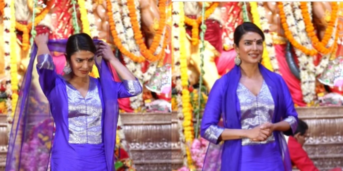 प्रियंका चोपड़ा का पारंपरिक अवतार वायरल, दुर्गा पूजा में पल्लू ढक कर लिया आशीर्वाद
