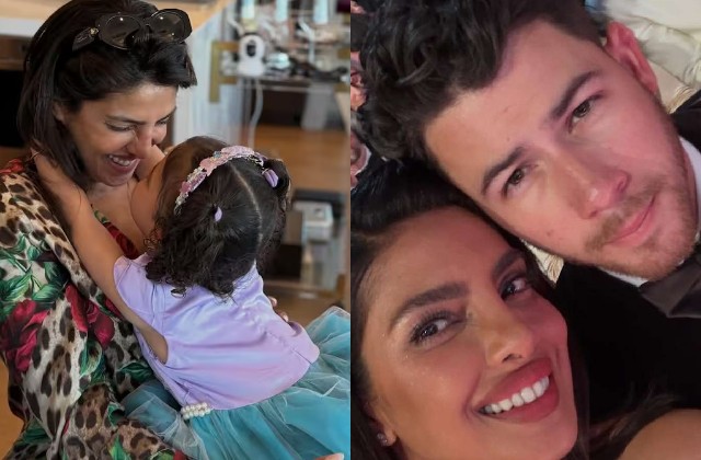 एक तस्वीर में उनकी बेटी मालती उनके साथ गोद में बैठी दिखाई देती हैं, जहां प्रियंका मुस्कुराते हुए उनके साथ खेलती नजर आ रही हैं।