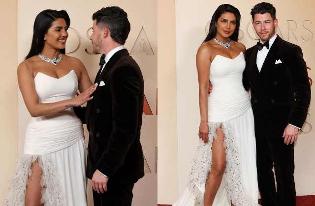 Oscar के रेड कार्पेट पर पति निक संग छाई प्रियंका, थाई स्लिट ऑफ-शोल्डर व्हाइट गाउन में लगाया बोल्डनेस का तड़का