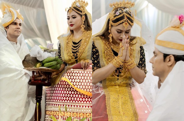 वहीं दुल्हन लिन की बात करें तो उन्होंने अपनी शादी के समारोह के लिए पारंपरिक रासलीला पोशाक पहनी है। राधा और कृष्ण के प्रबल अनुयायी होने के नाते, ये ड्रम जैसी ड्रेस मणिपुरी दुल्हन की पोशाक है जिसे पोटलोई कहा जाता है।