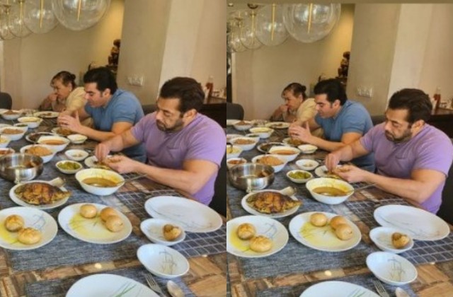 फोटो में सलमान और उनके भाई अरबाज खान अन्य लोगों के साथ, कुछ दाल बाटी चूरमा और एक लोकप्रिय राजस्थानी व्यंजन खाते हुए दिखाई दे रहे हैं। इस दौरान सलमान राजस्थानी खाने का लुत्फ उठाने में डूबे दिखाई दे रहे हैं।