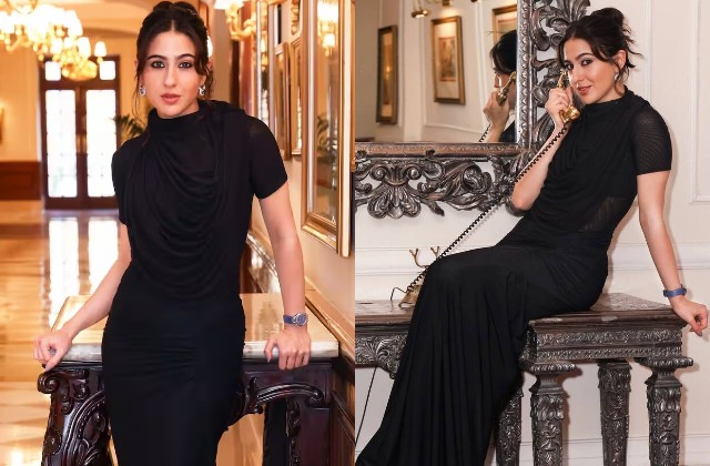 लुक की बात करें तो सारा ने ब्लैक कलर की बॉडीकॉन ड्रेस पहनी हुई है, जो उनके फिगर को खूबसूरती से हाइलाइट कर रही है। इस आउटफिट में वह बेहद स्टाइलिश और एलिगेंट लग रही हैं।