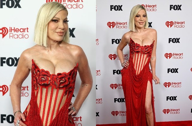 iHeartRadio Music Awards में टोरी स्पेलिंग ने खींचा सबका ध्यान, शीयर मेश कटआउट्स ड्रेस में दिखीं बेहद बोल्ड