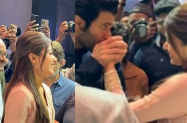 हाल ही में हैदराबाद में आयोजित रश्मिका मंदाना की फिल्म ‘द गर्लफ्रेंड’ के सक्सेस इवेंट में विजय देवरकोंडा का ऐसा अंदाज देखने को मिला जिसने सभी का ध्यान खींच लिया। इवेंट के दौरान विजय ने स्टेज पर रश्मिका को न सिर्फ सपोर्ट किया बल्कि उनके हाथों पर प्यार से किस भी किया। इस दौरान रश्मिका विजय की ओर देखकर शर्माती हुई नज़र आईं, जबकि वहां मौजूद फैंस इस रोमांटिक पल पर झूम उठे।