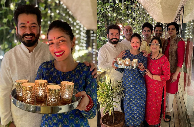 पहली दीवाली:फैमिली और पति आदित्य घर संग यामी का सेलिब्रेशन, हाथों में दीए की थाली थाम यूं दिए पोज