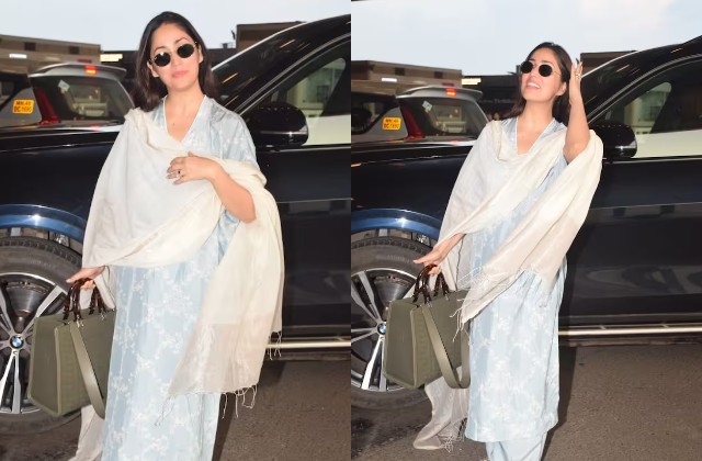 अपकमिंग फिल्म ‘हक’ के प्रमोशन के बीच एयरपोर्ट पर हुईं स्पॉट यामी गौतम, पेस्टल ब्लू सूट में अपनी सादगी से जीता सबका दिल